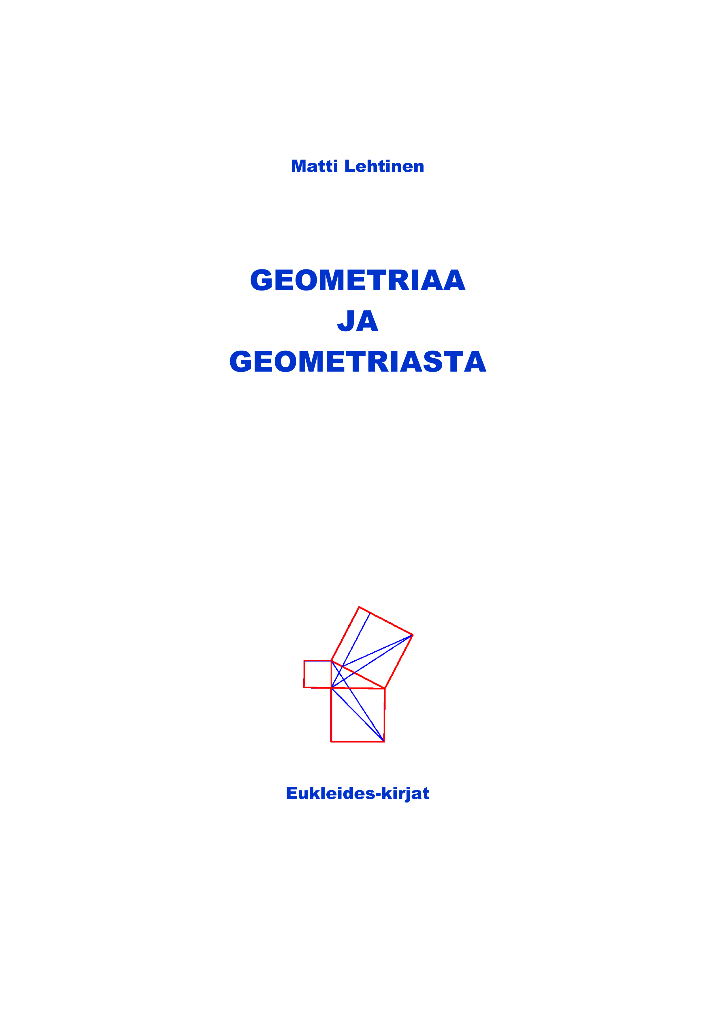 Lokakuussa 2021 ilmestynyt Geometriaa ja geometriasta (ISBN 978-952-68775-8-7, 118 s., koko B5, pehmeäkantinen) esittelee aluksi jonkin verran kattavasti euklidisen tasogeometrian perusteita. Tällainen tietoaines lukeutui taannoin yleissivistykseen, mutta koulumatematiikan sisältöjen kovin muututtua geometrian alkeidenkin tuntemus on jäänyt aika vähäiseksi.